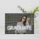 Néon de graduação, preto e branco, e brilhantes felicitações modernas, 2 anúncio de graduação em na moda de fotografia.