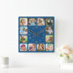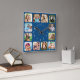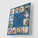 Relógio personalizado moderno com linhas simples e limpas, com números brancos em um fundo azul clássico e doze quadrados arredondados segurando suas fotos favoritas de família, animais de estimação, viagens ou outras memórias especiais.