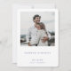 Este simples casamento de fotos, salve o cartão plano de data, mostra sua foto na frente. Seus primeiros nomes são realçados por amplo espaço em branco, com apenas sua data e local abaixo deles, com uma mensagem de data salva no verso em vez da frente ou em ambos os lados. Este efeito é reforçado pela nossa utilização não convencional de maiúsculas e minúsculas. Embora tenhamos usado todas as maiúsculas para seus nomes, usamos minúsculas exclusivamente para o outro texto em ambos os lados, mesmo quando maiúsculas são normalmente exigidas, como em sua cidade e nome de estado, etc. Tomamos esta liberdade no espírito de seguir as regras, a menos que as quebremos de forma consistente, criando assim a nossa própria regra! ;) A cor do texto em ambos os lados é um azul escuro médio elegante. Como fundo padrão, em ambos os lados escolhemos uma base transparente que faz da cor do papel a base, para uma aparência simples e limpa. No entanto, se você preferir outra cor para um ou ambos os lados, poderá escolher facilmente uma com as ferramentas de edição. Você também pode alterar a cor, o estilo da fonte e o tamanho do texto que personaliza. E é claro que você pode usar maiúsculas onde você vê ajustado. Você também pode alterar ou excluir campos de texto - você pode, por exemplo, não precisar incluir informações do site, etc., ou preferir 'por favor' a 'gentilmente' na mensagem de data salvar no retorno. Torne este cartão exclusivamente seu com as ferramentas intuitivas de design e sua inspiração. E por favor verifique nosso compro para uma seleção de salvar as datas em vários formatos, como cartões postais e ímãs, também!