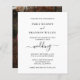 Convite para casamento de orçamento moderno, com um design simples e na moda, com texto casual que inclui "casamento" em uma tipografia elegante com traços. Todo o texto está em preto-e-branco e pode ser alterado na ferramenta de edição de design. O fundo tem sua foto favorita. Estes convites baratos de casamento são impressos em folhas de papel para uma opção econômica.