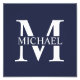 Monograma personalizado e presentes de nome que apresentam monograma branco personalizado no estilo de letra serif clássico com caixa de nome no meio do monograma em fundo azul marinho. Perfeito como decores caseiros, presentes para o lar, presentes de férias para a família, recém-casados e muito mais.