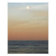 Haze amolece as cores do pôr do sol quando a lua sobe sobre um mar tranquilo.