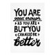 Impressão de lino preto e branco de uma citação motivacional que diz "Você é bom o suficiente, mas você pode sempre ser melhor". Oferece encorajamento às pessoas para saberem que a autoaceitação e o crescimento andam de mãos dadas.