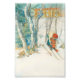 Mulher nas árvores de pássaros colocando seus esquis cruzados. Vintage de belas cores de arte pelo pintor sueco Carl Larsson.