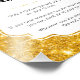 Este chá de fraldas dourado "Não diga bebê" será uma maneira fabulosa de fazer os convidados chás se divertirem e se misturarem. O design apresenta um fundo brilhante cintilante dourado com um recorte de quadro com as instruções do jogo numa combinação de fontes pretas.