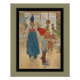 Garoto em boné vermelho e botas olhando para a árvore decorada de Jul. As pessoas celebram no fundo. Bela arte para feriados de Carl Larsson. Edição do artista norueguês diane g addis.