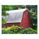 Esta impressão mostra um celeiro vermelho na Nova Inglaterra no verão.