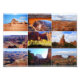 Também mostrados (no centro) estão o Pulpit e o Altar no Templo de Sinawava, no Parque Nacional do Zion. No canto inferior esquerdo, o Rio Verde esculpindo a ilha no céu Mesa do Parque Nacional de Canyonlands. O centro inferior é o Excelente White Throne em Zion. O Parque Estadual do Cavalo morto, centro-esquerda, mostra o Rio Colorado cortando uma curva aguda através da rocha. Na parte inferior direita estão O Monitor e a Merrimack, ao norte do Parque Nacional de Canyonlands, que são dois traseiros com o nome de navios "sem carga de ferro" que se bateram durante a Guerra Civil. O centro à direita é um pináculo no Parque Nacional de Arches.