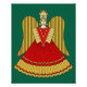 This Christmas illustration by Richard H. Fat depicts the Raushgoldengel, the golden Christmas angel of Nuremberg, Germany, a large version of which hangs over the entrance to the city’s famous Christkindlesmarkt.