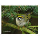 Esta é a minha segunda visita ao Parque do Patrimônio Elgin de Surrey, e eu realmente queria ver um Kinglet Crowned-Ouro novamente, minhas primeiras fotos em uma árvore caducada sendo nada além de rugosidades. Meu desejo foi concedido com um de vários cantores talentosos em uma árvore de abetos gigante, uma multitarefa de alta energia (ser capaz de cantar, e voar de galho para galho enquanto caçava insetos), um Reino Crowned Ouro, que no entanto se revelou um assunto desafiador para capturar. Baseado na fotografia original de W.H. Sim. Todos os Direitos Reservados. Mais informações em zazzle.com/walkswithnature