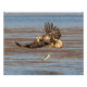 Uma águia careca imatura olha para o peixe que ela largou.