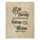 "Deus me conceda a SERENIDADE para aceitar as coisas que não posso mudar; a CORAGEM para mudar as coisas que posso; e a SABEDORIA para saber a diferença." Paz, força, cura e compreensão num momento de agitação, desespero ou incerteza. Conhecido como "A Oração da Serenidade", Associado à Recuperação e aos Programas de 12 Etapas. Usado por AA (Alcoólicos Anônimos). Oração escrita por Reinholt Niebuhr. Design: Caligrafia negra com fundo antigo natural. Paula Bragg 2011 Texto: "Deus me conceda a SERENITY para aceitar as coisas que não posso mudar; a CORAGEM para mudar as coisas que posso; e a SABEDORIA para saber a diferença."