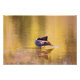 Foto de um ganso canadense se aliciando em uma seção rasa de um lago. O equilíbrio perfeito do ganso é refletido de volta na água, como é a ponta da pena que agarra suavemente a água. A paisagem circundante está refletindo as cores do Springtime na superfície da água. As ondulações de matizes amarelas, verdes e marrons espalham-se pela superfície do lago.