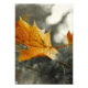 Folha de bordo laranja na floresta de outono, efeito colorido.