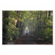 Um homem solitário caminhando pela estrada do Velho Tram numa manhã de outono em Preston, Lancashire