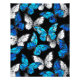 Borboletas realistas, azuis e brancas têm um padrão uniforme em fundo preto.