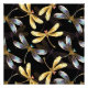 Padrão sem costura com ouro, joias, libélulas brilhantes com asas brilhantes e detalhadas sobre fundo preto. Dourada libélula.