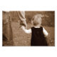 Uma garotinha segura a mão do pai com uma mão enquanto segura um ursinho de pelúcia com a outra.