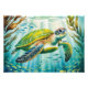 Watercolor painted turtle design with products.