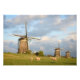 Foto impressão de três moinhos de vento e ovelhas olhando para a câmera sob lindas nuvens no céu, em uma adorável paisagem de primavera no campo na Holanda.