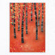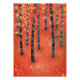 Pintura de um pássaro ou de uma floresta escaneada no outono. Florestas de abstrato vermelho, laranja e amarelo.