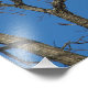 Um par de águias-carecas adultas empobrecidas numa árvore com um céu azul brilhante ao fundo.