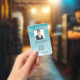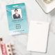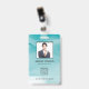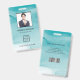 Cartão de identificação de empresa de fotos moderno com código de bar sobre o plano de fundo de tinta azul de álcool gradiente. Informações adicionais podem ser adicionadas à parte traseira deste crachá de ID de negócio