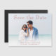 Foto moderna do casal Casamento Salve o ímã do cartão de anúncio Data com uma fonte rosa empoeirada.
