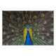 Pavão indiano com penas de cauda abertas a fazer a sua dança de acasalamento. Vista frontal.