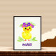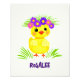 Pequeno pato amarelo bonito com flores e grama verde
