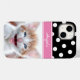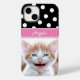 Padrão de bolinhas preto e branco na parte superior do gabinete. Adicione sua própria foto à metade inferior para criar um belo presente personalizado para ela. Personalize o estilo, o tamanho ou a cor da fonte para criar o seu próprio estilo favorito. Mude o fundo preto atrás do padrão de bolinhas branca para a sua cor favorita. Você também pode mudar a banda rosa sob o texto da caligrafia. Podemos ajudar a transferir para outro tipo de caso, se necessário.