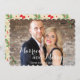 Este cartão é especial para os Newlyweds! Substitua a foto por sua foto favorita, usando o botão "personalizar esta modelo". O cartão diz Casado e Feliz na cobertura de script e você insere seus nomes e o ano na parte inferior. Há algumas folhas e bagas ocas em cantos opostos que você pode manter ou excluir. O reverso da carta tem um padrão de folhas sagradas, bagas e arcos vermelhos que diz Feliz Natal em diferentes fontes.