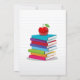 Cartão simples divertido, que pode ser usado como cartão de saudação, convite ou anúncio. Mostre o primeiro dia de escola do seu filho ou qualquer evento temático da escola com isso feito para aprender modelo do tema. White notebook com linhas azuis em segundo plano, amplamente regulamentado. Uma pilha de livros educacionais com uma maçã vermelha no topo, e uma moldura fotográfica feita de lápis coloridos. Inclua seu texto personalizado e sua foto digital para uma manutenção impressa de professor, pai, escola pública ou privada, jardim de infância ou qualquer ano! preserve suas lembranças queridas em estilo!