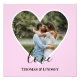 O design tem uma estrutura cardíaca rosa-bebê no centro e textos de caligrafia moderna brancos que podem ser personalizados de acordo com sua preferência. Substitua a foto no centro por sua própria foto de casamento. Vai fazer um adorável costume de presentes de casamento para seus hóspedes ou para seu próprio amor.