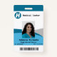 Foto de funcionário da empresa facilmente personalizável, crachá com código de bar e logotipo da empresa. O crachá está disponível com um clipe de metal, retrátil ou de ferro. Concebido por 1bizChoice (direitos reservados).