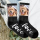 AMOR! Surpreenda seu amante favorito de cachorro com esse amor fofo com meias de fotos de cães impressos. Estas meias de cachorro são um presente perfeito para o casamento. Eles serão os favoritos de todos os amantes de cães, mães de cães e pais de cães. Personalize essas meias de fotos de cachorro com sua foto favorita de filhotes ou sua foto de noivado com seu cachorro. Veja a nossa coleção de casamento para anúncios de casamento de cães e cartões salve a data de cães. COPYRIGHT © 2020 Judy Burrows, Black Dog Art - Todos Os Direitos Reservados. Foto personalizada Pet Love Paw Print Dog Meias