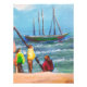 Cena de pesca artesanal... os pescadores, tendo chegado e descarregado o peixe, permanecem na costa esperando o retorno dos barcos. Um barco, com velas reunidas, é transportado por ondas suaves em direção à costa, onde os outros pescadores e a sua família ajudarão a descarregar o peixe. Uma vida difícil, mas uma vida que eles amam e todos nós apreciamos. Esta cena é um detalhe da minha própria pintura acrílica.