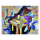 Uma partitura musical, flores e piano enviam a energia para uma explosão musical.
