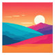 Este trabalho de arte capricho captura a beleza de um pôr do sol vibrante sobre montanhas com capas de neve. As cores ricas e o estilo lúdico adicionam certamente um toque de magia a qualquer sala.