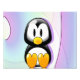 Este pinguim adorável repousa sobre um fundo estranho de blues, verdes e roxas