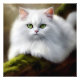 Esta pintura bizarra, porém bela, é de um gato branco esvoaçante, sua cauda se espalhou como um fã e seus olhos largos com curiosidade. As cores vívidas na pintura ajudam a mostrar a textura do pelo macio e selvagem. O fundo intenso ajuda a adicionar profundidade e vida à peça. Trata-se de uma pintura única que seria um complemento atraente para qualquer decoração.