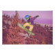 Esta pintura digital apresenta um menino em um snowboard.