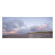 Impressão fotográfico de nuvens coloridas sobre dunas, praia e Mar do Norte no formato Panorama durante um pôr do sol na praia de Scheveningen, em Haia, na costa dos Países Baixos.