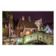 Pintura aquosa da ponte Bonifacius e casas medievais na antiga cidade histórica de Bruges, Bélgica.