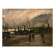 As últimas brasas do crepúsculo grudavam-se no céu de Amsterdã, sangrando laranja ígneo e rosa flamingo por toda a tela de nuvens. Aqui, na De Ruijterkade, o movimentado porto da cidade, uma sinfonia de indústria tranquila se desenrolava. O ranger rítmico do cordame, os gritos abafados dos marinheiros, a suave ondulação da água contra os cais de madeira – todas melodias nesse concerto noturno. --- Eu, Vincent van Gogh, estava aqui, meus pinceladas imitando a dança de luz e sombra na água. Silhuetas de navios, alguns com chaminés que proclamavam sua era moderna, balançavam como gigantes adormecidos. Sobre as pedras do calçamento, figuras se moviam com um propósito cansado; talvez pescadores, seus rostos marcados pelas linhas de uma vida passada a lutar com o mar, ou estivadores, esmagados pelos cascos imponentes, seu trabalho uma balé silencioso na luz que se esvanecia. --- Há um silêncio aqui, uma pausa prenhe entre o suspiro de um dia e a inalação do próximo. Será o fim de uma jornada, ou o início hes