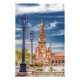 Olhando para o extremo oeste da Praça de España, há uma grande torre que dá as boas-vindas aos visitantes do marco construído em 1928 para a Feira Mundial. Eu capturei esta foto em setembro de 2019, usando as luzes de rua para enquadrar a torre como visitantes meander sobre a praça.