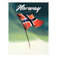 Poster de Esqui da Noruega com uma bandeira da nação escandinava.
