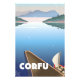 Poster de viagens de Corfu de um barco num lago.