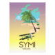 Impressão de poster de viagens Simi Grécia com avião leve e mapa do destino popular.