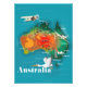 Poster de viagens do Mapa da Austrália. Poster de férias de cartoon australiano.